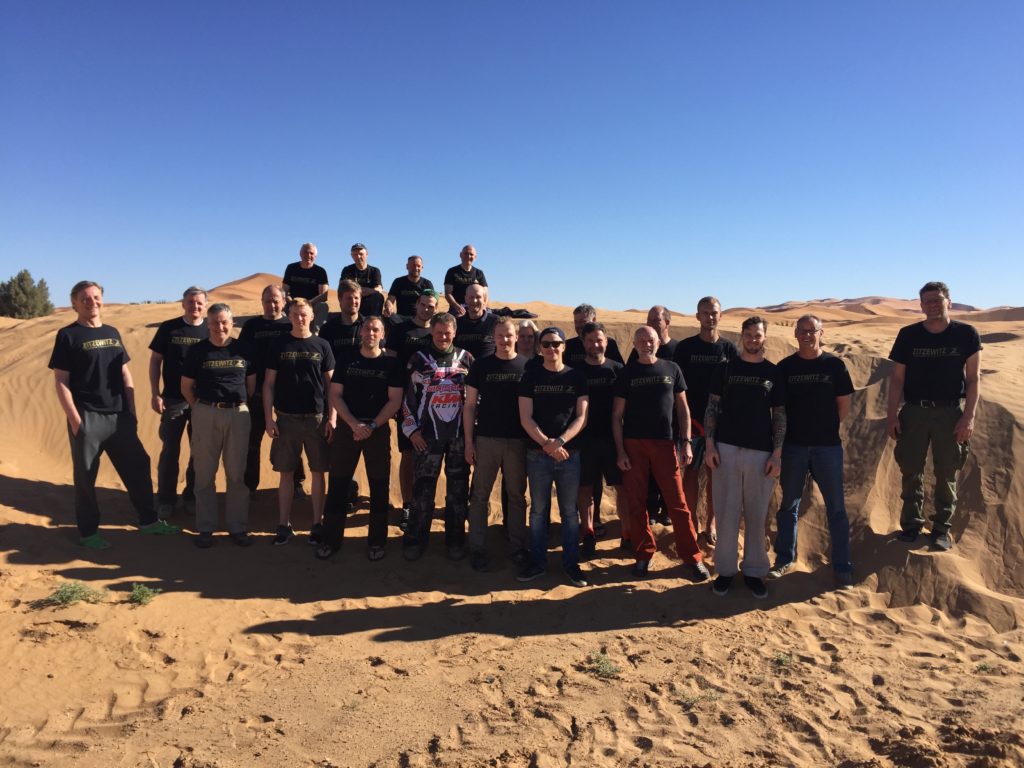 Wir haben Zeit und wollen das Fahrvergnügen genießen, sowie die Landschaft und die Menschen kennen lernen. Es werden die Teilnehmer in mehrere Gruppen unterteilt, so dass Jeder mit Gleichgesinnten auf ähnlichen fahrerischen Niveau unterwegs ist. Ich möchte keinen überfordern, aber auch keinen unterfordern, bzw. langweilen (was in Marokko sowieso nicht möglich ist…). Jeder soll seinen Spaß haben, so wie er sich wohl fühlt!